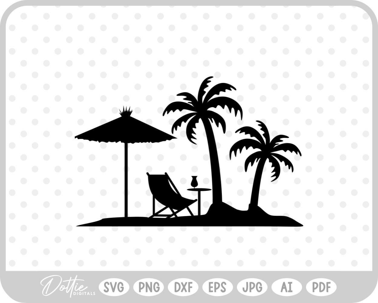 Beach Chair Summer Palm Tree Umbrella Sand SVG PNG DXF – Cricut Silhouette Cutting File
