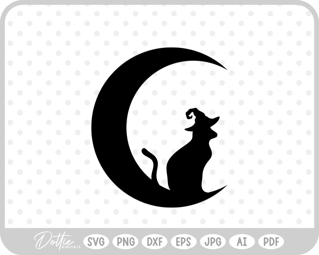 Cat Witch Hat Moon Halloween SVG PNG DXF – Cricut Silhouette Cutting File