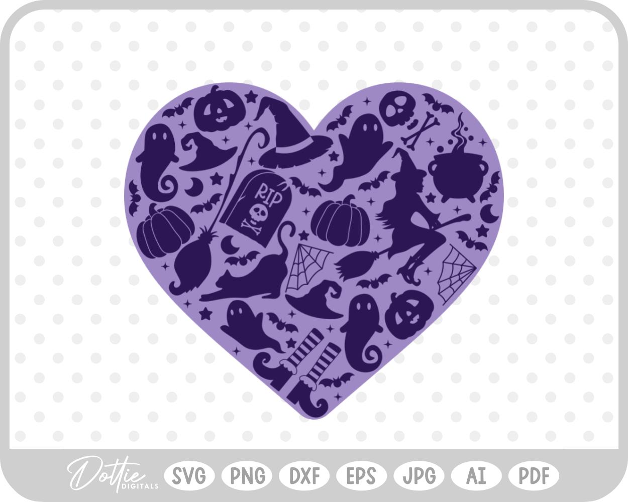 Halloween Heart Shapes Ghosts Bat Witch SVG PNG DXF EPS JPG AI PDF File