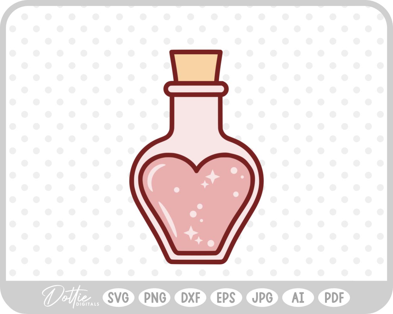 Love Potion Heart Shaped Bottle Valentine’s Day SVG PNG DXF EPS JPG AI PDF File
