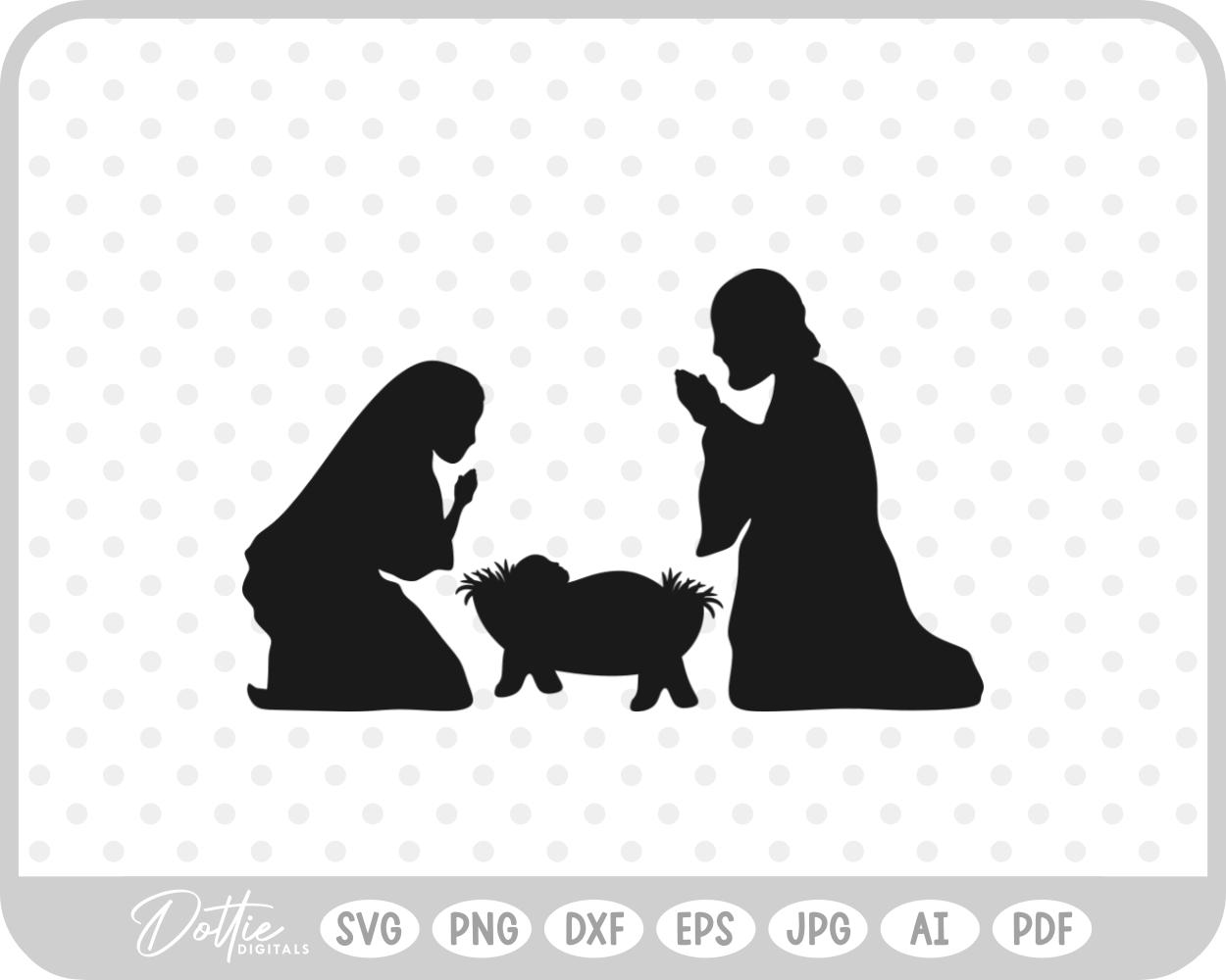 Nativity Scene Outline Silhouette Shape Mary Joseph Baby Jesus SVG PNG DXF – Cricut Silhouette Cutting File