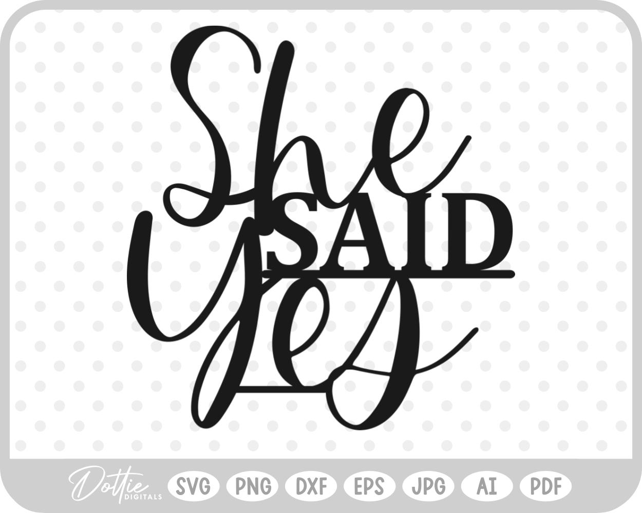 She Said Yes, Engagement Cake Topper SVG PNG DXF – Cricut Silhouette Cutting File
