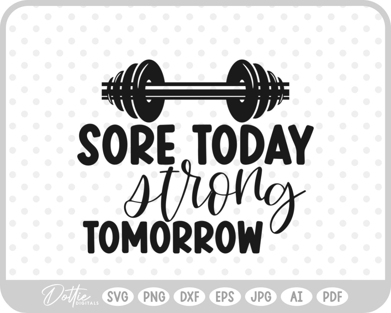 Sore Today Strong Tomorrow Quote Weights Gym Dumbbell Fitness Weightlifting SVG PNG DXF EPS JPG AI PDF File