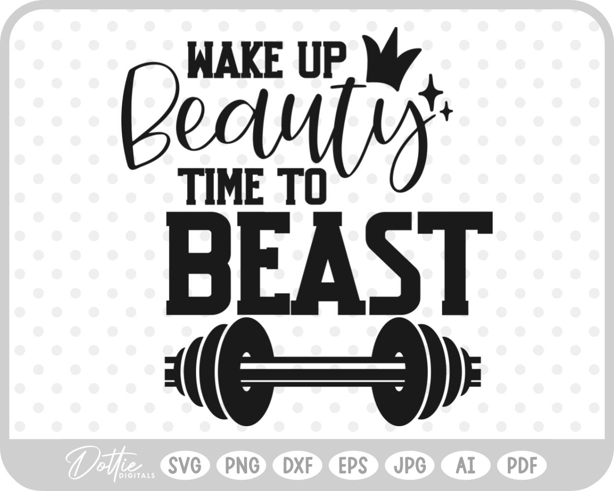 Wake Up Beauty Time to Beast Quote Weights Gym Dumbbell Fitness SVG PNG DXF – Cricut Silhouette Cutting File